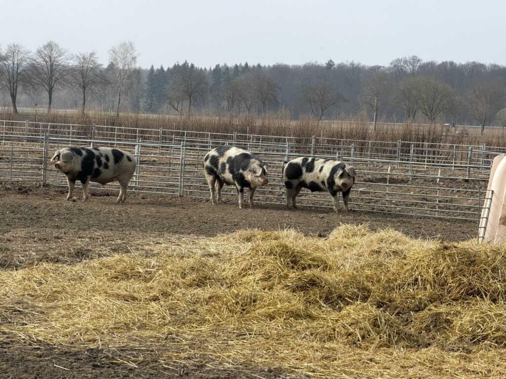 Bäuerinnen bevorzugen bunte, gescheckte Schweine